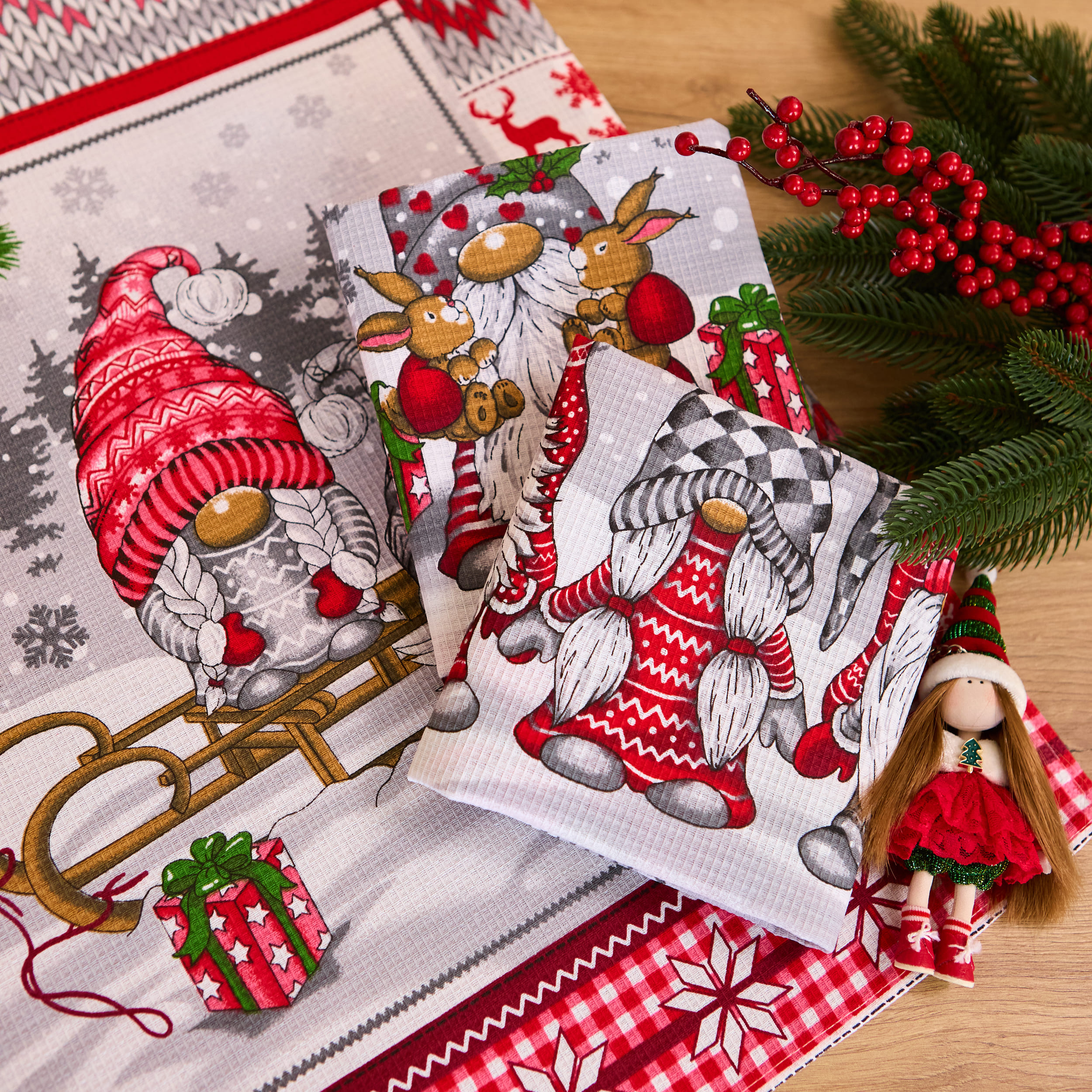 Набір вафельних рушників "Гноми" 60 х 47 см - м’які та зносостійкі (комплект 3 шт)