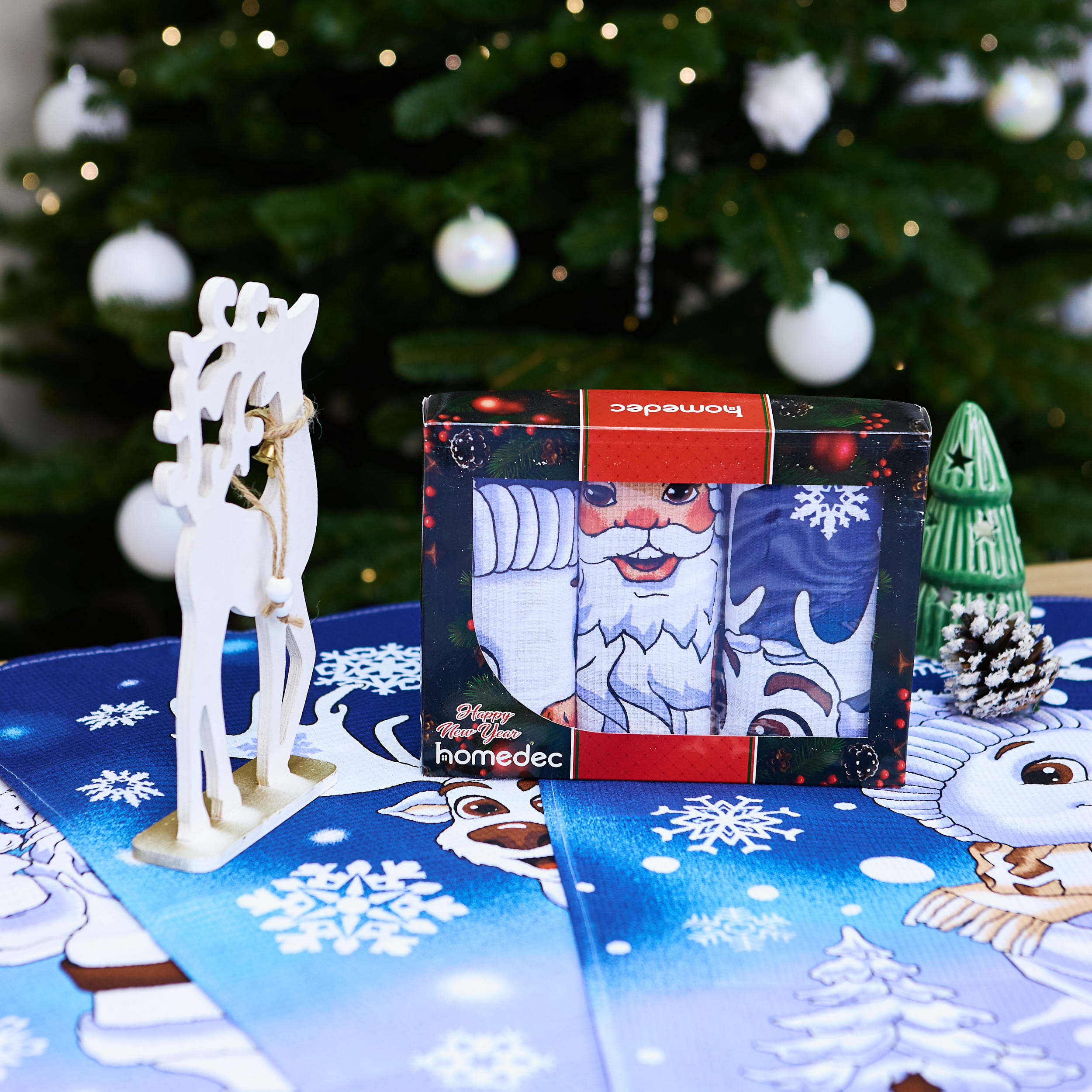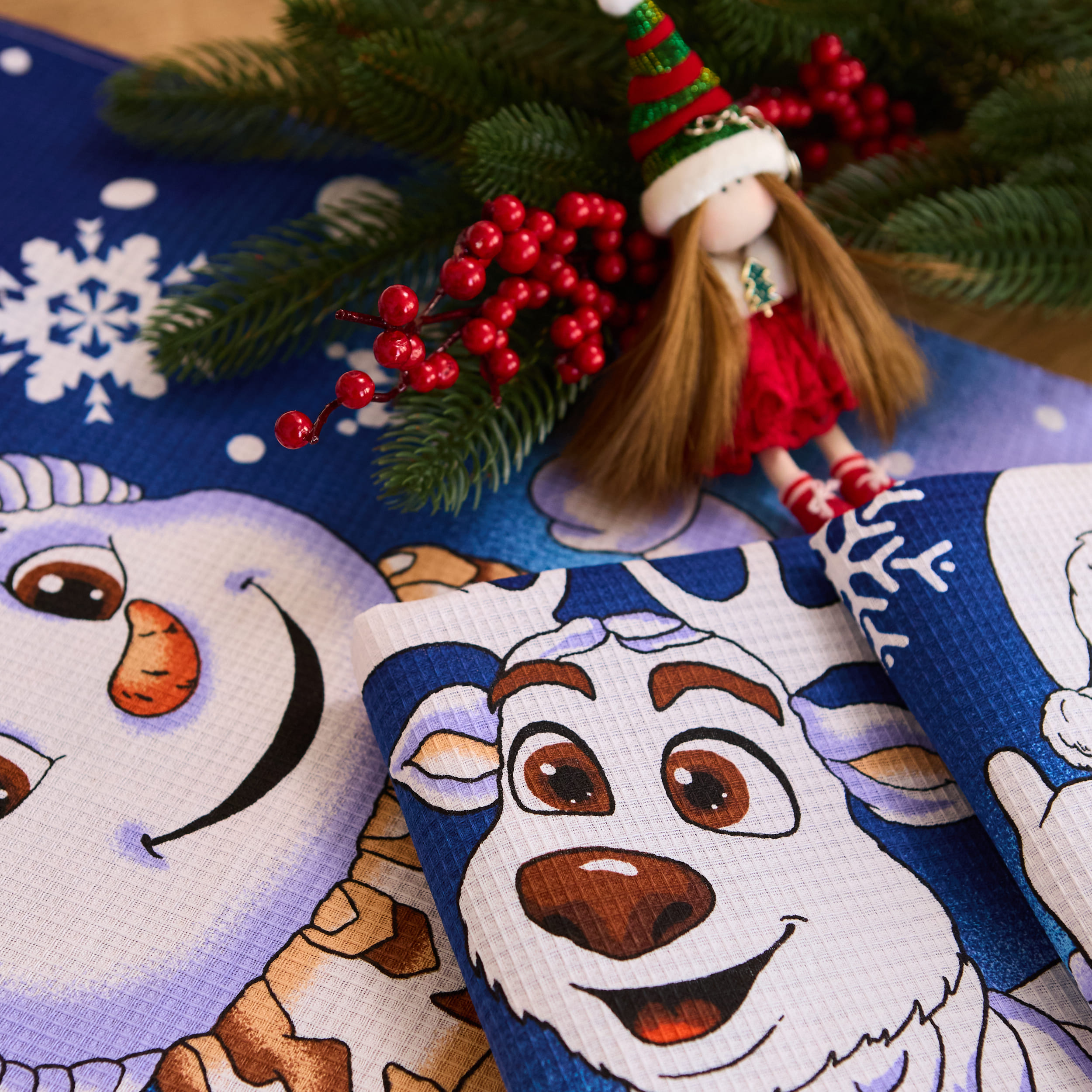 Набір вафельних рушників у коробці "Новорічна казка" 60 х 47 см - м’які та зносостійкі (комплект 3 шт)