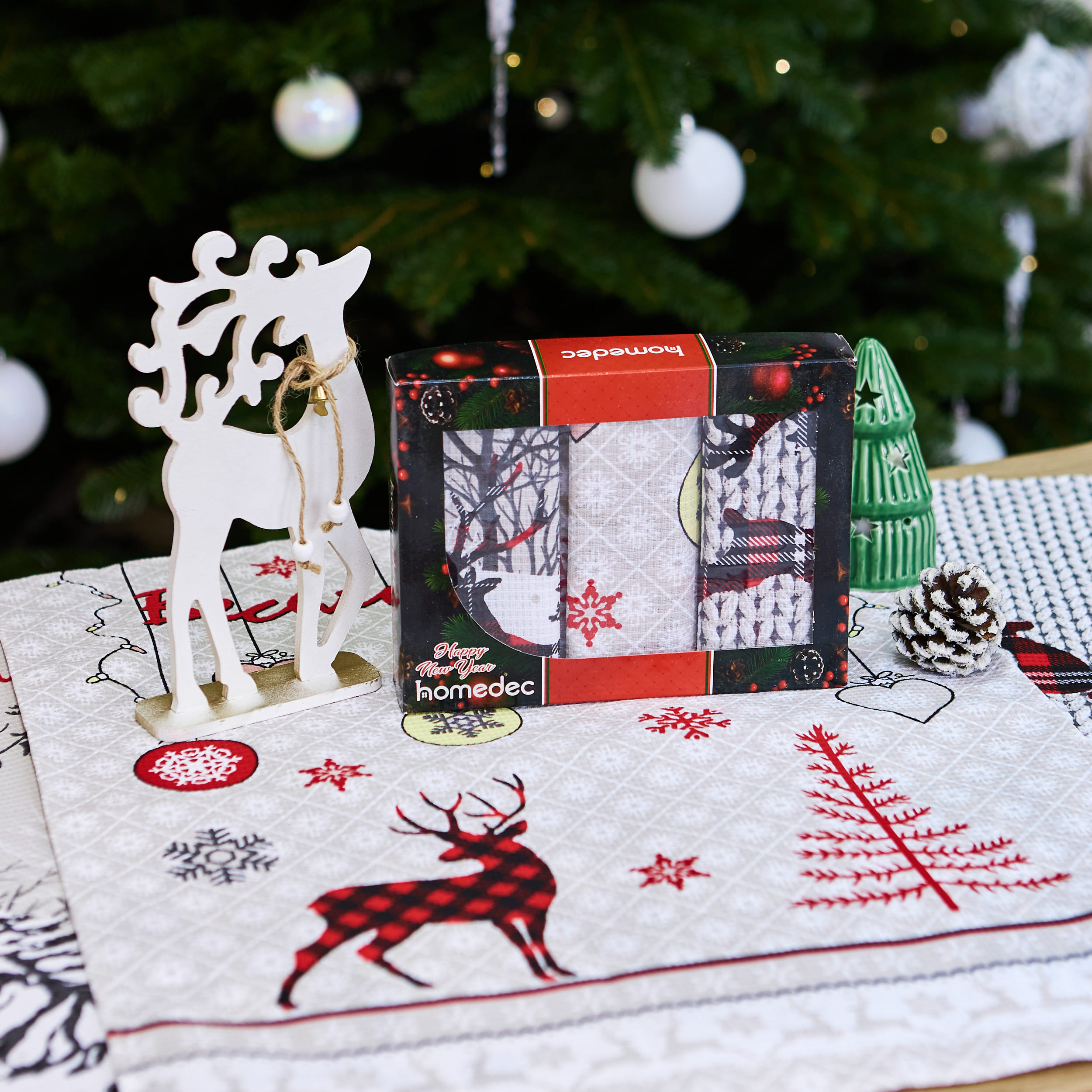 Набір вафельних рушників у коробці "Щасливого Різдва" 60 х 47 см - м’які та зносостійкі (комплект 3 шт)