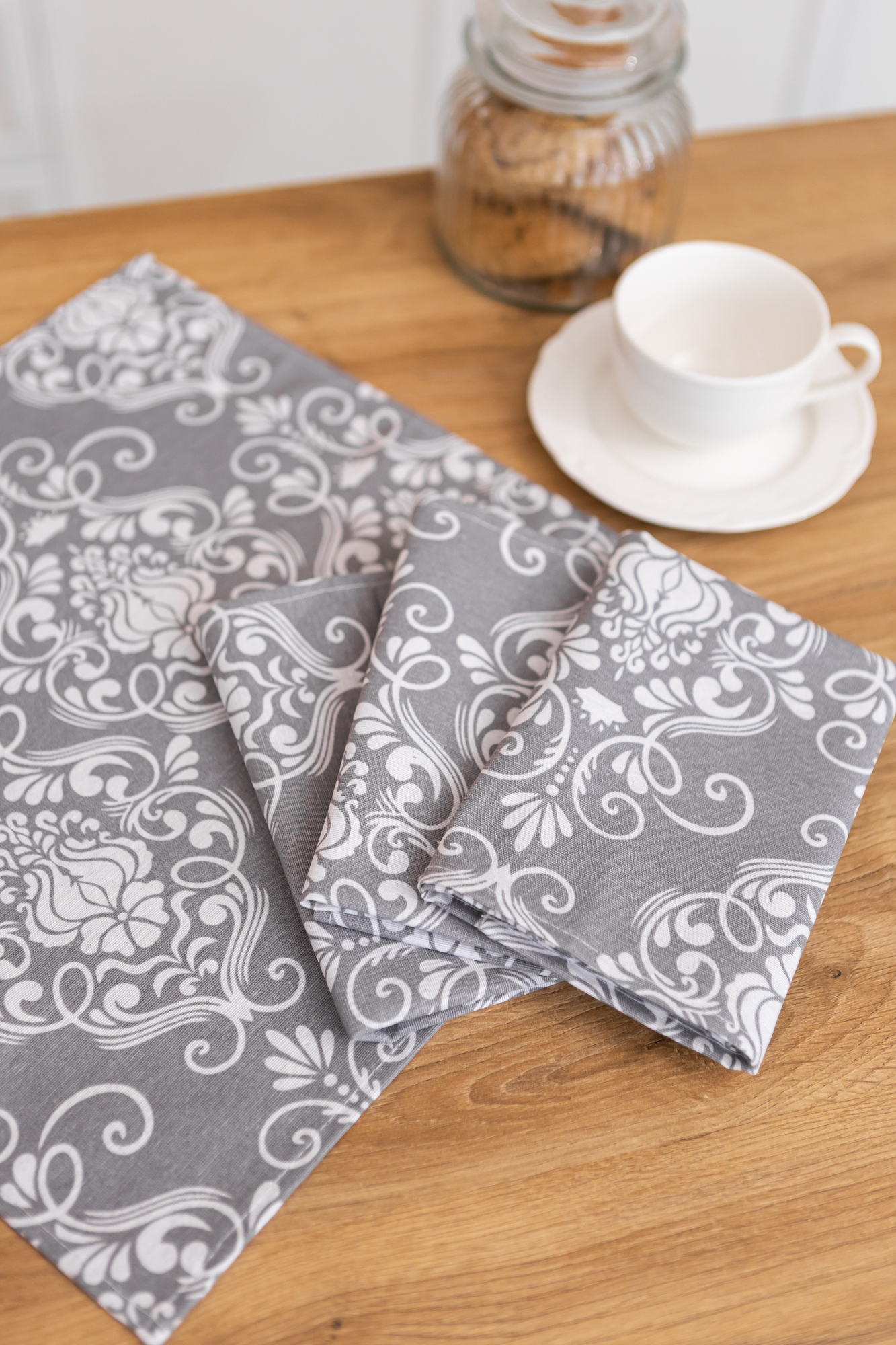 Серветки бавовняні "Вензель сірий" - 35 × 35 см, (4 шт) натуральний текстиль для сервірування столу